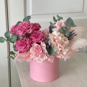 Роскошный большой букет из кустовых пионовидных роз и гортензий