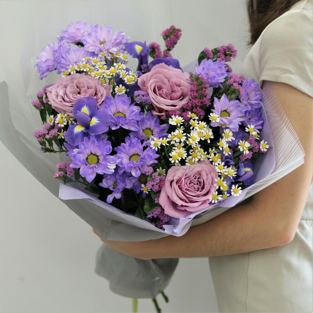 Этот дизайнерский букет из сиреневых розочек, очаровательного танацетума, ромашек и статицы, оформленный в стильной упаковке, станет настоящим источником вдохновения и радости. Нежные оттенки и разнообразие текстур создают гармоничное сочетаниедля девушки, жены, любимой, подруги. Подарите этот букет, и он станет символом ваших искренних чувств, наполняя каждый день светом и счастьем